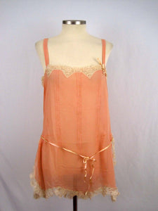 Deadstock 1920s Peach Silk Crepe Step-In Teddy Floral Net Lace Silk Ribbon Flower