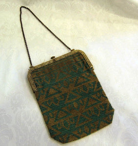 1920s Art Deco Egyptian Revival Beaded Flapper Purse French Micro Bead Handbag