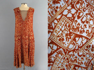 1920s Silk Flapper Dress Orange Burnout Velvet Egyptian Revival