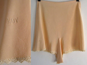 1920s Peach Silk Crepe Tap Pants Tatted Lace Silk Panties Flapper Lingerie