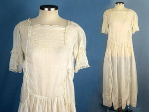 1920s Flapper Wedding Dress Creamy White Embroidered Cotton Organdy Gown