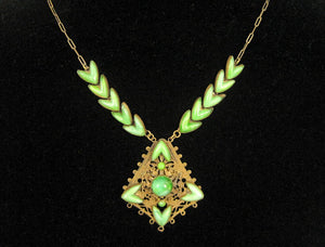 1920s Neiger Style Egyptian Revival Necklace Nile Green Czech Glass Peking Glass