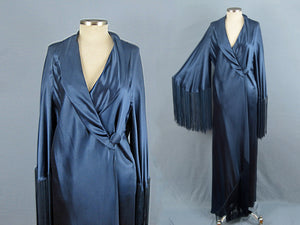 1930s Liquid Silk Satin Dressing Gown Bias Cut Blue Silk Robe