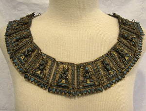 1930s Tibetan Buddhist Ceremonial Collar Necklace Brass Turquoise Glass
