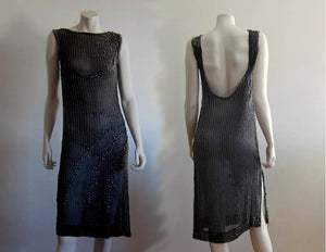 1930s Art Deco Beaded Silk Dress Rhinestone Glass Beads Low Scoop Back