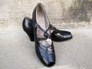 1930s Art Deco Mary Jane Pumps Enna Jettick Peep Toe Shoes Deadstock