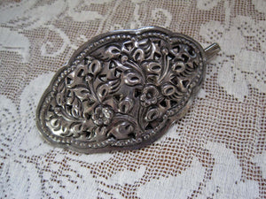 Antique Edwardian Art Nouveau Sterling Silver Hair Clip Barrette Repousse Floral Pattern