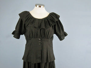 1900s Victorian Edwardian Swimsuit Black Cotton 2-Piece Bathing Suit
